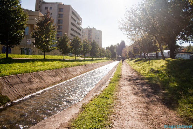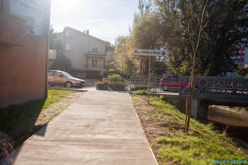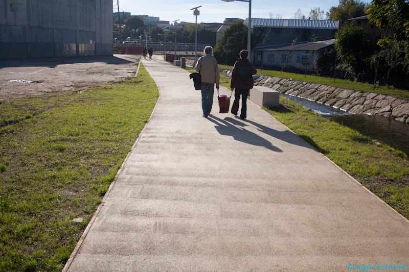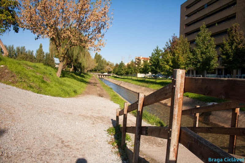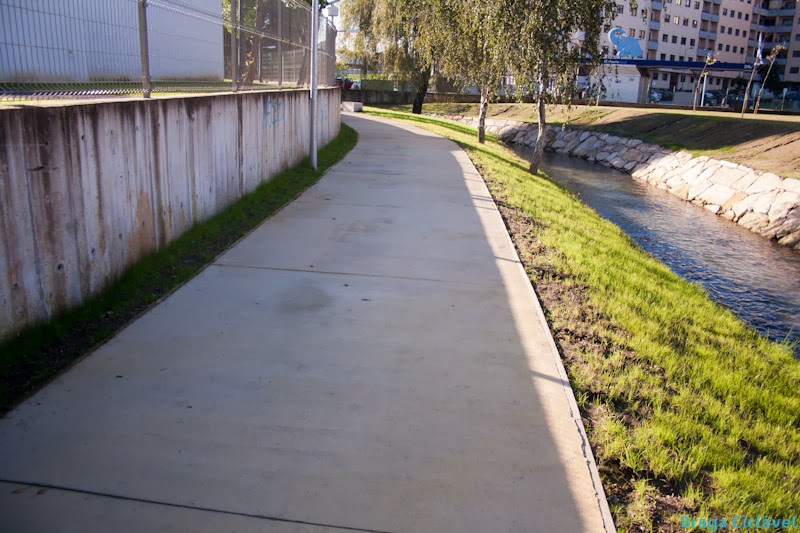 Passada a ponte chegamos à melhor parte da via pedonal ciclável. Larga e com espaço para alargar mais se necessário. Até à Rua do Couteiro -traseiras do Parque de Exposições de Braga (PEB)- a via pedonal ciclável é bastante agradável.