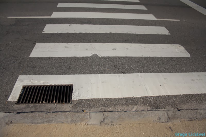 Para além do piso existe ainda a questão do sinal de proibido que impede a circulação entre a zona dos galos e a Av. 31 de Janeiro. É necessário colocar ali a exceção para velocípedes e no sentido contrário colocar um sinal a avisar sobre a possibilidade de circulação de velocípedes e/ou peões no sentido contrário.